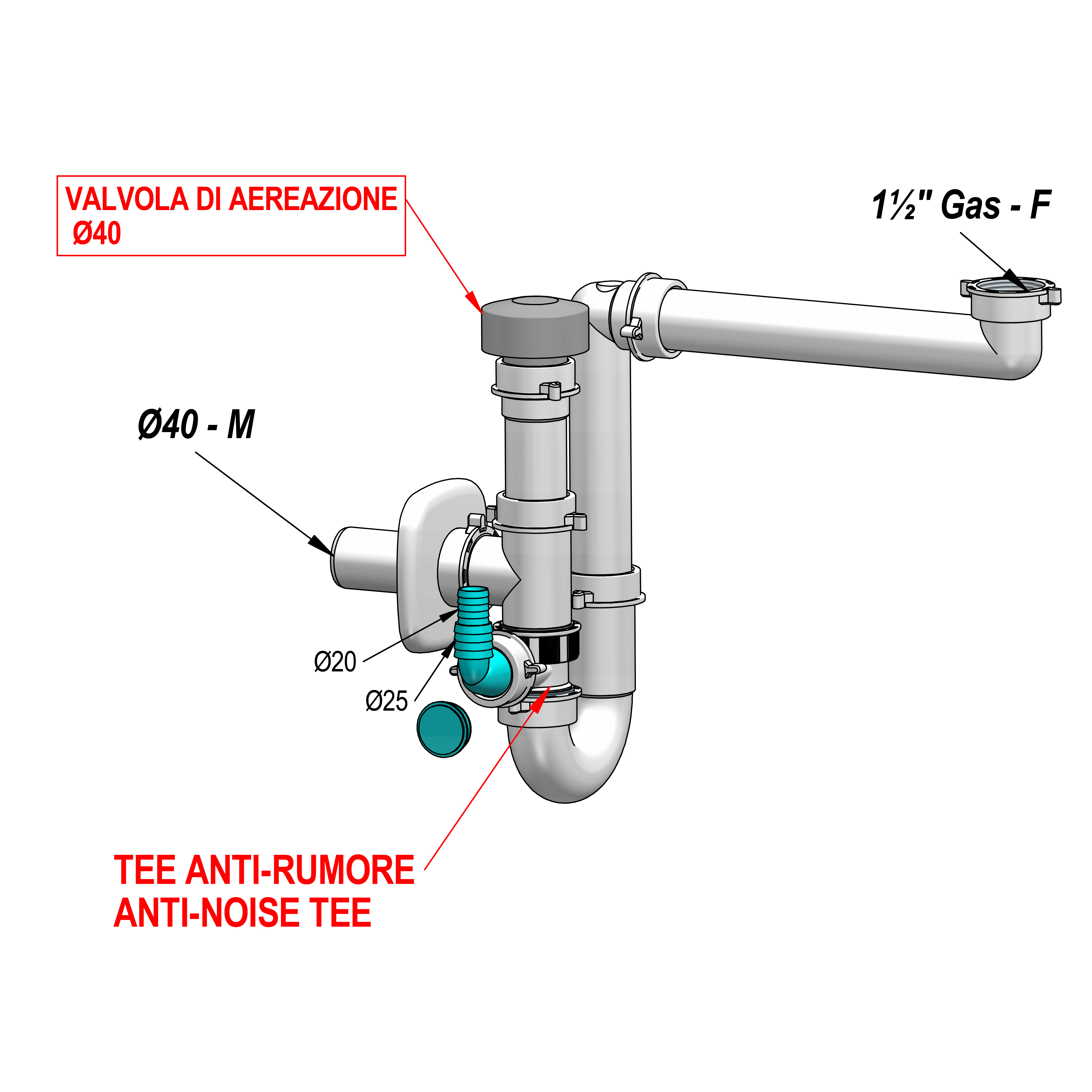 Trap for bowl sinks with anti-noise TEE and venting valves