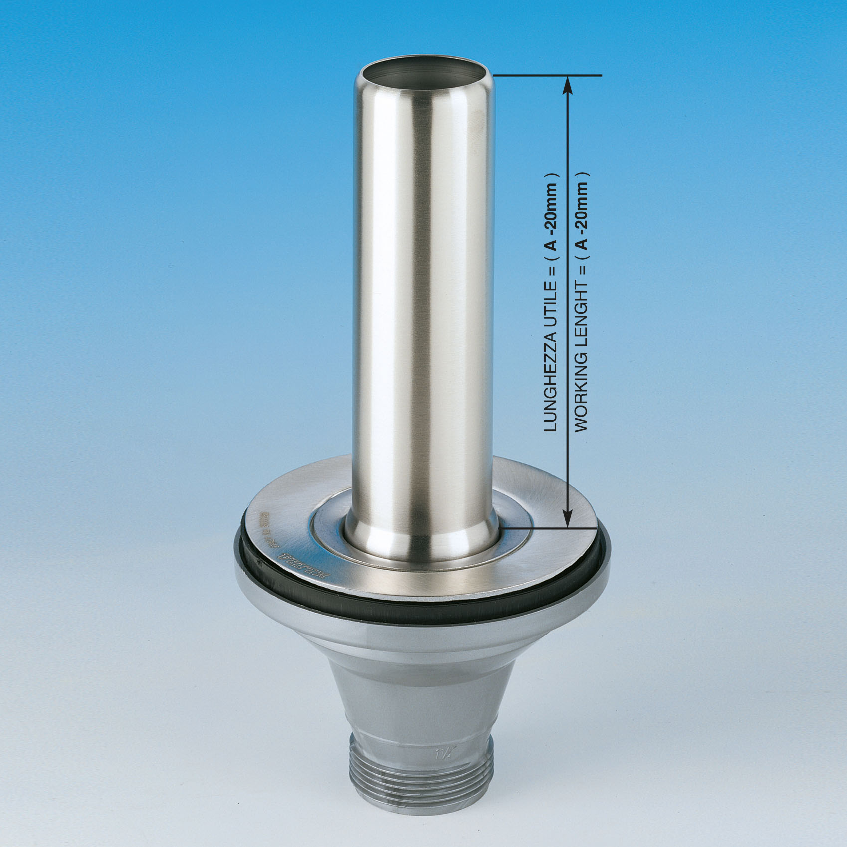 Piletta con tubo sfioratore inox. Per lavelli con foro Ø 90 mm.